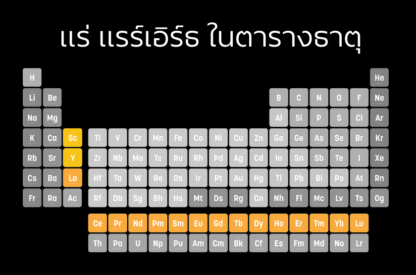 แร่แรร์เอิร์ธ หรือ แร่หายาก หรือ Rare Earth Elements (REEs) เป็นกลุ่มของธาตุโลหะที่มีคุณสมบัติพิเศษและมีความสำคัญในอุตสาหกรรมเทคโนโลยีและพลังงาน แร่เหล่านี้ประกอบไปด้วย 17 ธาตุ ได้แก่ ลิทิเนียม (Lanthanum), ซีเรียม (Cerium), พราเซโอดิเมียม (Praseodymium), นีโอดิเมียม (Neodymium), โพรมีเทียม (Promethium), ซาแมเรียม (Samarium), ยูโรเพียม (Europium), แกโดลิเนียม (Gadolinium), เทอร์เบียม (Terbium), ดิสโพรเซียม (Dysprosium), โฮลเมียม (Holmium), เออร์เบียม (Erbium), ทูเลียม (Thulium), อิตเตอร์เบียม (Ytterbium), ลูทีเทียม (Lutetium), สแกนเดียม (Scandium) และอิตเทรียม (Yttrium) แม้ว่าจะถูกเรียกว่า “แร่หายาก” แต่จริง ๆ แล้วพวกมันไม่ได้หายากมากนัก เพียงแต่พบในปริมาณน้อยกระจายอยู่ในแหล่งแร่หลายแห่งและต้องผ่านกระบวนการแยกสกัดที่ซับซ้อน ใบบทความนี้จึงขอเรียกทับศัพท์ว่า “แร่แรร์เอิร์ธ” เพื่อกันความสับสน